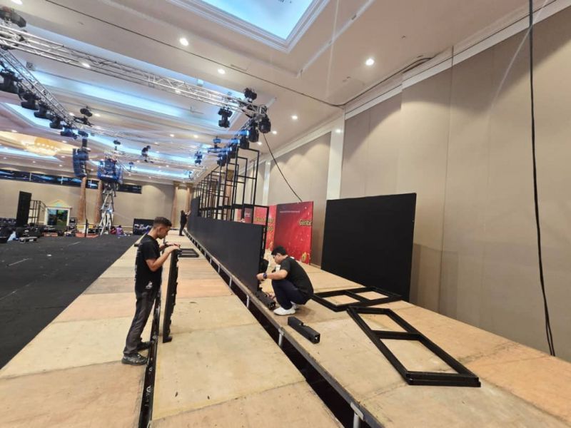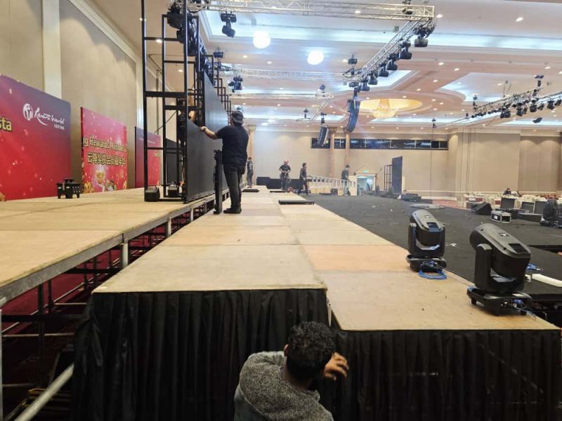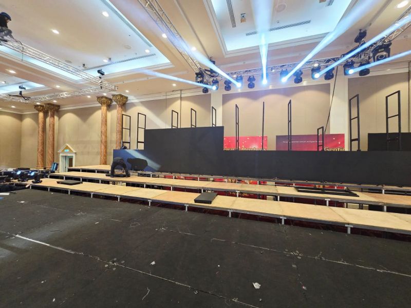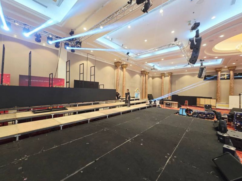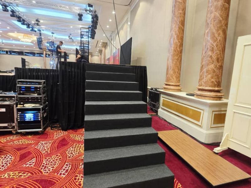 stage with carpet and skirting